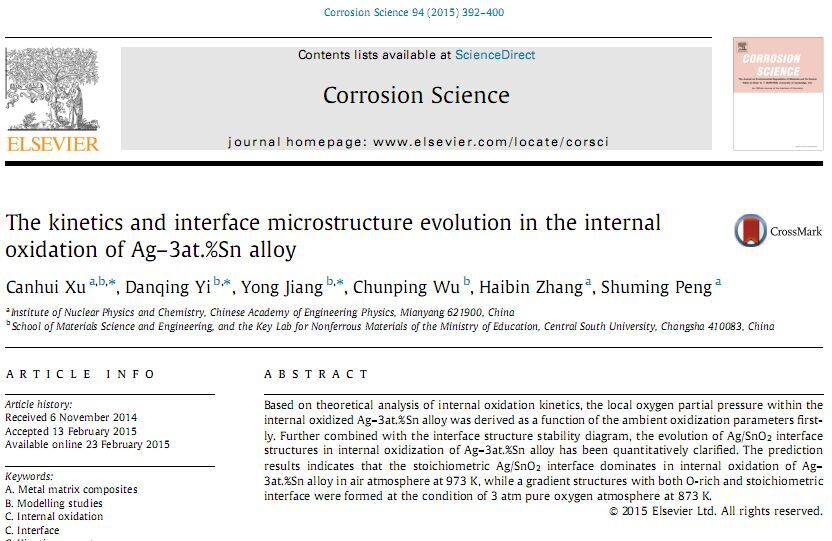 - 2015/1/23: Congratulate Dr. Canhui Xu for his paper's being published on 《Corrosion Science》(IF=3.69) !