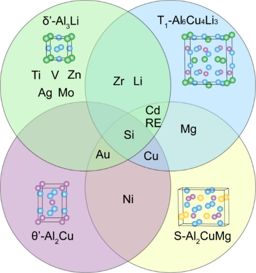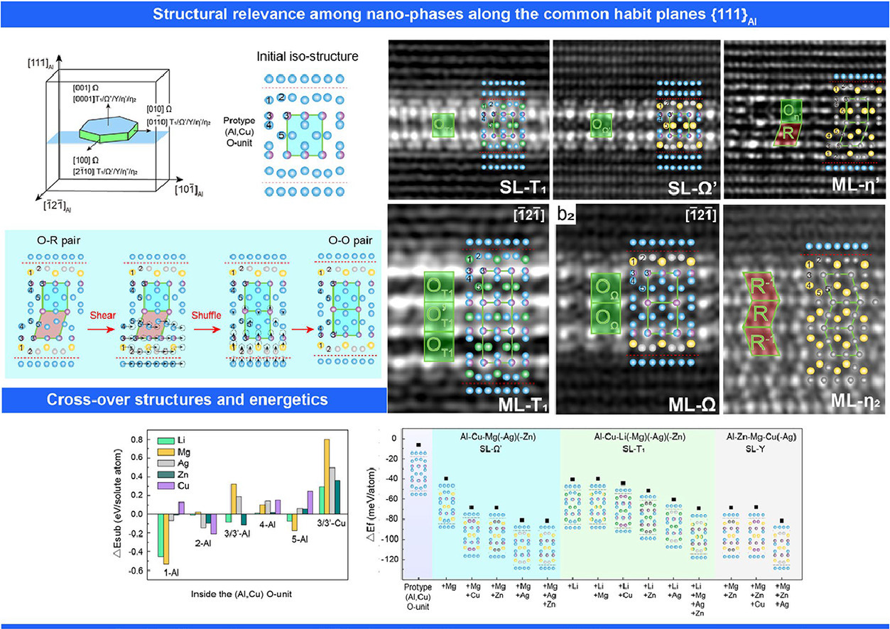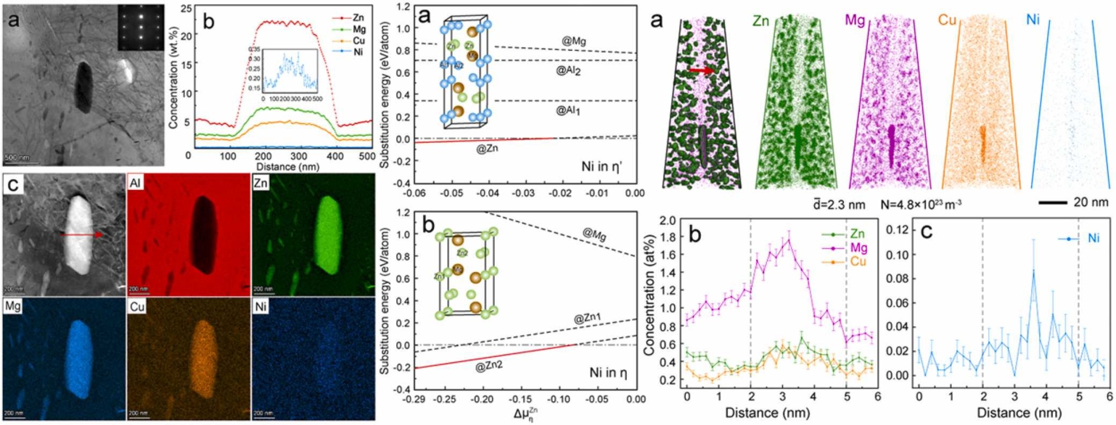 论文开展HAADF-STEM微结构表征与第一性原理计算研究,深入揭示成分交叉铝合金中不同纳米相之间的竞争形成机制和结构演变规律,基于此开展多元合金化行为及效应的定量计算,可打破铝合金现有成分体系的局限,实现复杂成分交叉铝合金的精准设计。