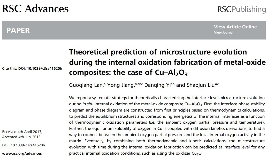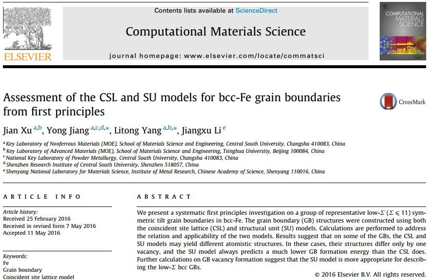 - 2016/5/11: Congratulate Jian Xu for her first paper being accepted for publishing on Computational Materials Science (IF=2.13).LiTong is the second corresponding author of this paper. Thanks Litong for his great supervision of this work.