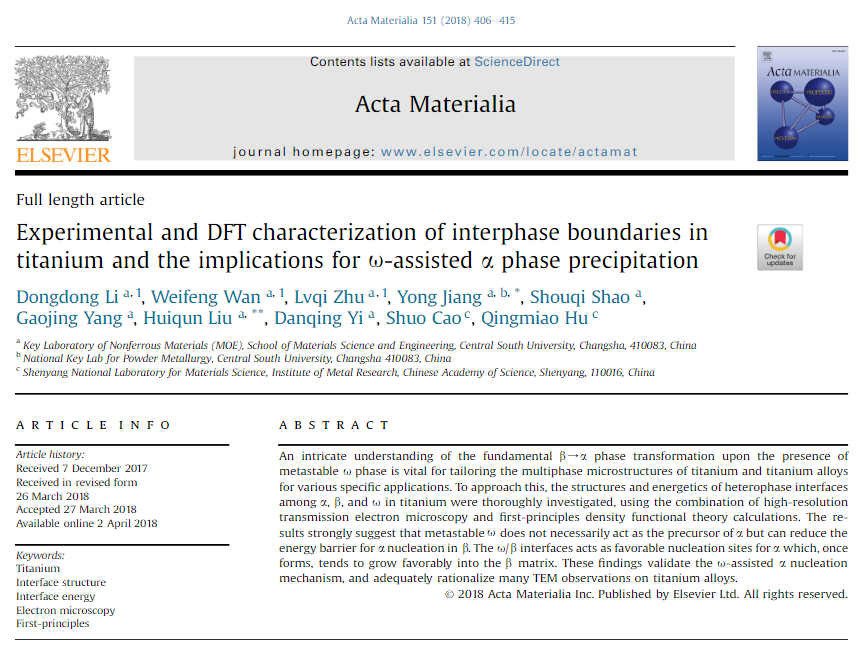 - 2018/6/25: Congratulate Dongdong Li, Weifeng Wan, Lvqi Zhu for their paper being published on ACTA Mater. ACTA Mater is one of the top journals in Materials Science and Engineering (IF=6.036).